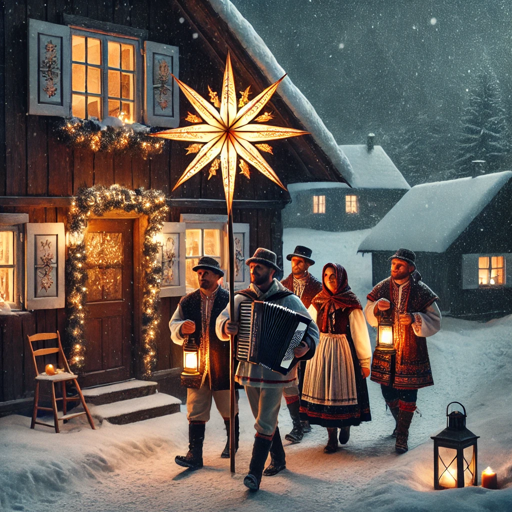 • Tradycyjne kolędowanie, czyli chodzenie od domu do domu – forma, w której grupy kolędników w tradycyjnych strojach i z akompaniamentem instrumentów niosą świąteczną radość sąsiadom i mieszkańcom okolicy.